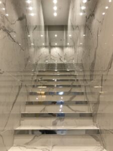 - 壁や床などすべてタイルを使用し、高級感あふれる内装を実現